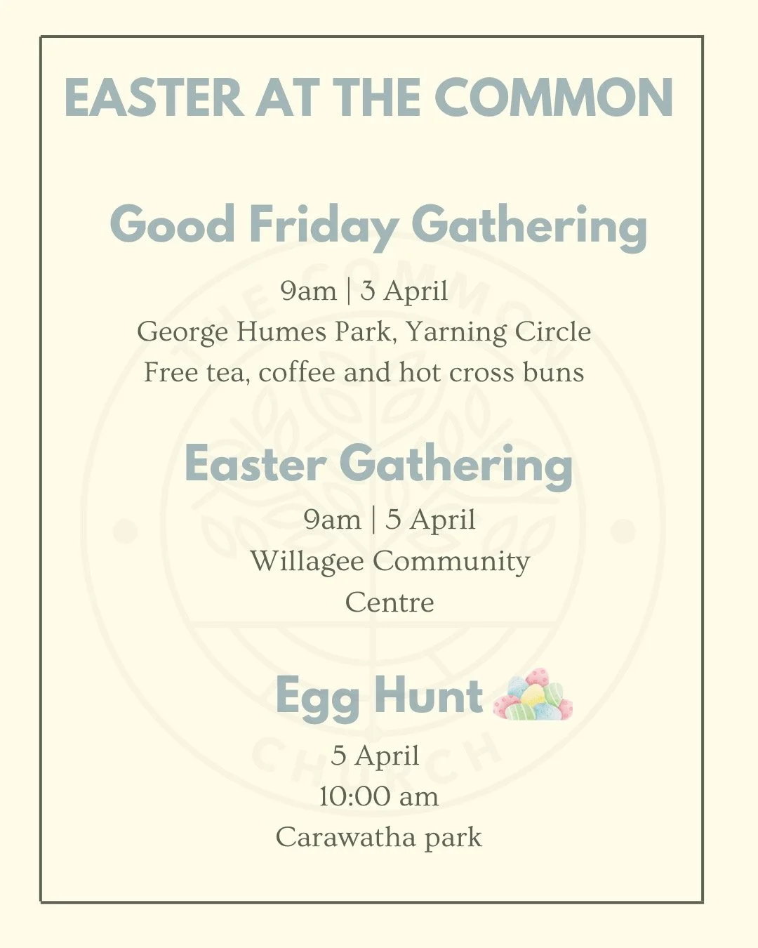 We are a family on mission, a group of people committed to following Jesus, and bringing the good news of God's love to the City of Melville and beyond by living Common lives.